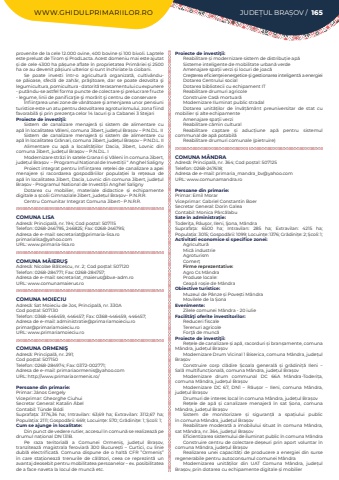 WWW.GHIDULPRIMARIILOR.RO JUDE%u021aUL BRA%u0218OV / 165provenite de la cele 12.000 ovine, 400 bovine %u0219i 100 bivoli. Laptele este preluat de Tirom %u0219i ProdLacta. Acest domeniu mai este ajutat %u0219i de cele 4300 ha p%u0103%u0219une aflate %u00een proprietatea Prim%u0103riei %u0219i 2500 ha ce au devenit p%u0103%u0219iuni ulterior %u0219i sunt %u00eenchiriate la ciobani.%u00a0Se poate investi %u00eentr-o agricultur%u0103 organizat%u0103, cultiv%u00e2nduse p%u0103ioase, sfecl%u0103 de zah%u0103r, pr%u0103%u015fitoare, dar se poate dezvolta %u015fi legumicultura, pomicultura - datorit%u0103 terasamentului cu expunere - put%u00e2ndu-se astfel forma puncte de colectare %u015fi prelucrare fructe - legume, linii de panifica%u0163ie %u015fi mor%u0103rit %u015fi centru de conservare%u00a0 %u00cenfiin%u0163area unei zone de v%u00e2n%u0103toare %u015fi amenjarea unor pensiuni turistice este un atu pentru dezvoltarea agroturismului, zona fiind favorabil%u0103 %u015fi prin prezen%u0163a celor 14 lacuri %u015fi a Cabanei 3 StejariProiecte de investi%u0163ii:Sistem de canalizare menajer%u0103%u00a0 %u0219i sistem de alimentare cu ap%u0103%u00a0%u00een localitatea V%u0103leni, comuna Jibert, jude%u021bul Bra%u0219ov%u00a0%u2013 P.N.D.L. IISistem de canalizare menajer%u0103%u00a0 %u0219i sistem de alimentare cu ap%u0103%u00a0%u00een localitatea Gr%u0103nari, comuna Jibert, jude%u021bul Bra%u0219ov%u00a0%u2013 P.N.D.L. IIAlimentare cu ap%u0103%u00a0 a localit%u0103%u021biilor Dacia, Jibert, Lovnic din comuna Jibert, jude%u021bul Bra%u0219ov%u00a0%u2013 P.N.D.L. IModernizare str%u0103zi %u00een satele Granari %u0219i V%u0103leni %u00een comuna Jibert, jude%u021bul Bra%u0219ov %u00a0%u2013 Programul Na%u021bional de Investi%u021bii %u201c Anghel SalignyProiect integrat pentru %u00eenfiin%u021barea re%u021belei de canalizare a apei menajere %u0219i racordarea gospod%u0103riilor popula%u021biei la re%u021beaua de ap%u0103 %u00een localitatea Jibert, Dacia, Lovnic din comuna Jibert, jude%u021bul Bra%u0219ov%u00a0- Programul National de Investi%u021bii Anghel SalignyDotarea cu mobilier, materiale didactice %u0219i echipamente digitale a %u0219colii Gimnaziale Jibert, jude%u021bul Bra%u0219ov%u2013 P.N.R.R.Centru Comunitar Integrat Comuna Jibert%u2013 P.N.R.R.COMUNA LISAAdres%u0103: Principal%u0103, nr. 194; Cod po%u0219tal: 507115Telefon: 0268-246795, 246825; Fax: 0268-246795; Adresa de e-mail: secretariat@primaria-lisa.roprimarialisa@yahoo.comURL: www.primaria-lisa.roCOMUNA M%u0102IERU%u015eAdres%u0103: Nicolae B%u0103lcescu, nr. 2; Cod po%u0219tal: 507120Telefon: 0268-284771; Fax: 0268-284757; Adresa de e-mail: secretariat_maierus@bv.e-adm.roURL: www.comunamaierus.roCOMUNA MOIECIUAdres%u0103: Sat Moieciu de Jos, Principal%u0103, nr. 330ACod po%u0219tal: 507130Telefon: 0368-446459, 446457; Fax: 0368-446459, 446457; Adresa de e-mail: administratie@primariamoieciu.roprimar@primariamoieciu.roURL: www.primariamoieciu.roCOMUNA ORMENI%u015eAdres%u0103: Principal%u0103, nr. 291; Cod po%u0219tal: 507150Telefon: 0268-284974; Fax: 0372-002771; Adresa de e-mail: primariaormenis@yahoo.comURL: http://www.primariaormenis.ro/Persoane din primarie:Primar: J%u00e1nos GergelyViceprimar: Gheorghe CiuhuiSecretar General:%u00a0Katalin%u00a0%u00c1belContabil: T%u00fcnde%u00a0B%u00f3di%u00a0Suprafa%u021ba:%u00a0 3176,36 ha; Intravilan:%u00a0 63,69 ha; Extravilan:%u00a0 3112,67 ha; Popula%u021bia:%u00a02111; Gospod%u0103rii:%u00a0669; Locuin%u021be:%u00a0570; Gr%u0103dini%u021be:%u00a01; %u0218coli:%u00a01; Cum se ajunge in localitate:Din punct de vedere rutier, accesul %u00een comun%u0103 se realizeaz%u0103 pe drumul na%u021bional DN 131B.Pe raza teritorial%u0103 a Comunei Ormeni%u0219, jude%u021bul Bra%u0219ov, tranziteaz%u0103 magistrala feroviar%u0103 300 Bucure%u0219ti %u2013 Curtici, cu linie dubl%u0103 electrificat%u0103. Comuna dispune de o halt%u0103%u00a0 CFR %u201dOrmeni%u0219%u201d %u00een care sta%u021bioneaz%u0103 trenurile de c%u0103l%u0103tori, ceea ce reprezint%u0103 un avantaj deosebit pentru mobilitatea persoanelor %u2013 ex. posibilitatea de a face naveta la locul de munc%u0103 etc.Proiecte de investi%u0163ii:Reabilitare %u0219i modernizare sistem de distribu%u021bie ap%u0103Sisteme inteligente de mobilitate urban%u0103 verdeAmenajare spa%u021bii verzi %u0219i locuri de joac%u0103Cre%u015fterea eficien%u0163ei energetice %u015fi gestionarea inteligent%u0103 a energieiDotarea Centrului socialDotarea bibliotecii cu echipament ITReabilitare drumuri agricoleConstruire Cas%u0103 mortuar%u0103Modernizare Iluminat public stradalDotarea unit%u0103%u021bilor de %u00eenv%u0103%u021b%u0103m%u00e2nt preuniversitar de stat cu mobilier %u0219i alte echipamenteAmenajare spa%u021bii verziReabilitare c%u0103min culturalReabilitare captare %u0219i aduc%u021biune ap%u0103 pentru sistemul communal de ap%u0103 potabil%u0103 Reabilitare drumuri comunale (pietruire)COMUNA M%u00c2NDRAAdres%u0103: Principal%u0103, nr. 364; Cod po%u0219tal: 507125Telefon: 0268-247618; Adresa de e-mail: primaria_mandra_bv@yahoo.comURL: www.comunamandra.roPersoane din primarie:Primar: Emil MorarViceprimar: Gabriel Constantin BoerSecretar General: Dorin GaleaContabil: Monica P%u00e2rc%u0103labuSate %u00een administra%u021bie:Toderi%u0163a, R%u00e2u%u015for, Ileni, %u015eona, M%u00e2ndraSuprafa%u021ba:%u00a0 6500 ha; Intravilan:%u00a0 285 ha; Extravilan:%u00a0 4215 ha; Popula%u021bia:%u00a03015; Gospod%u0103rii:%u00a01099; Locuin%u021be:%u00a01376; Gr%u0103dini%u021be:%u00a02; %u0218coli:%u00a01; Activitati economice si specifice zonei:Agricultur%u0103Mic%u0103 industrieAgroturismComer%u021bFirme reprezentative:Agro Cs M%u00e2ndraProduse locale: Ceap%u0103 ro%u0219ie de M%u00e2ndraObiective turistice:Muzeul de P%u00e2nze %u0219i Pove%u0219ti M%u00e2ndra Movilele de la %u0218onaEvenimente:Zilele comunei M%u00e2ndra - 20 iulieFacilit%u00e3%u0163i oferite investitorilor:Reduceri fiscaleTerenuri agricoleFor%u0163%u0103 de munc%u0103Proiecte de investi%u01