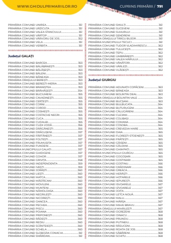 WWW.GHIDULPRIMARIILOR.RO CUPRINS PRIM%u0102RII / 791PRIM%u00c3RIA COMUNEI UNIREA.......................................................... 351PRIM%u00c3RIA COMUNEI URZICU%u021aA .................................................... 351PRIM%u00c3RIA COMUNEI VALEA STANCIULUI............................... 351PRIM%u00c3RIA COMUNEI V%u00c2RTOP......................................................... 351PRIM%u00c3RIA COMUNEI V%u00c2RVORU DE JOS................................. 352PRIM%u00c3RIA COMUNEI VELA ................................................................ 351PRIM%u00c3RIA COMUNEI VERBI%u021aA........................................................ 351Jude%u021bul GALA%u021aIPRIM%u00c3RIA COMUNEI BARCEA........................................................ 353PRIM%u00c3RIA COMUNEI B%u00c3L%u00c3B%u00c3NE%u0218TI.......................................... 353PRIM%u00c3RIA COMUNEI B%u00c3L%u00c3%u0218E%u0218TI.................................................. 353PRIM%u00c3RIA COMUNEI B%u00c3LENI.......................................................... 353PRIM%u00c3RIA COMUNEI B%u00c3NEASA .................................................... 353PRIM%u00c3RIA ORA%u0218ULUI BERE%u0218TI ...................................................... 353PRIM%u00c3RIA COMUNEI BERE%u0218TI-MERIA...................................... 353PRIM%u00c3RIA COMUNEI BRANI%u0218TEA................................................ 353PRIM%u00c3RIA COMUNEI BR%u00c3H%u00c3%u0218E%u0218TI.............................................354PRIM%u00c3RIA COMUNEI BUCIUMENI............................................... 355PRIM%u00c3RIA COMUNEI CAVADINE%u0218TI............................................ 355PRIM%u00c3RIA COMUNEI CER%u021aE%u0218TI..................................................... 355PRIM%u00c3RIA COMUNEI CORNI............................................................ 355PRIM%u00c3RIA COMUNEI COROD ......................................................... 355PRIM%u00c3RIA COMUNEI COSME%u0218TI................................................... 355PRIM%u00c3RIA COMUNEI COSTACHE NEGRI................................. 355PRIM%u00c3RIA COMUNEI CUCA.............................................................. 355PRIM%u00c3RIA COMUNEI CUDALBI...................................................... 355PRIM%u00c3RIA COMUNEI CUZA VOD%u00c3...............................................356PRIM%u00c3RIA COMUNEI DR%u00c3G%u00c3NE%u0218TI............................................356PRIM%u00c3RIA COMUNEI DR%u00c3GU%u0218ENI............................................... 357PRIM%u00c3RIA COMUNEI F%u00c2RT%u00c3NE%u0218TI .............................................. 357PRIM%u00c3RIA COMUNEI FOLTE%u0218TI...................................................... 357PRIM%u00c3RIA COMUNEI FRUMU%u0218I%u021aA ............................................... 357PRIM%u00c3RIA COMUNEI FUNDENI..................................................... 357PRIM%u00c3RIA MUNICIPIULUI GALA%u021aI................................................ 357PRIM%u00c3RIA COMUNEI GHIDIGENI.................................................. 357PRIM%u00c3RIA COMUNEI GOHOR......................................................... 357PRIM%u00c3RIA COMUNEI GRIVI%u021aA.........................................................358PRIM%u00c3RIA COMUNEI INDEPENDEN%u021aA ....................................359PRIM%u00c3RIA COMUNEI IVE%u0218TI.............................................................359PRIM%u00c3RIA COMUNEI JOR%u00c3%u0218TI........................................................360PRIM%u00c3RIA COMUNEI LIE%u0218TI..............................................................360PRIM%u00c3RIA COMUNEI MATCA...........................................................360PRIM%u00c3RIA COMUNEI M%u00c3ST%u00c3CANI ...............................................360PRIM%u00c3RIA COMUNEI MOVILENI....................................................360PRIM%u00c3RIA COMUNEI MUNTENI.....................................................360PRIM%u00c3RIA COMUNEI N%u00c3MOLOASA............................................360PRIM%u00c3RIA COMUNEI NEGRILE%u0218TI ...............................................360PRIM%u00c3RIA COMUNEI NICORE%u0218TI..................................................360PRIM%u00c3RIA COMUNEI OANCEA.......................................................360PRIM%u00c3RIA COMUNEI PECHEA........................................................360PRIM%u00c3RIA COMUNEI PISCU.............................................................360PRIM%u00c3RIA COMUNEI POIANA ........................................................360PRIM%u00c3RIA COMUNEI PRIPONE%u0218TI ..............................................360PRIM%u00c3RIA COMUNEI R%u00c3DE%u0218TI.......................................................360PRIM%u00c3RIA COMUNEI REDIU............................................................360PRIM%u00c3RIA COMUNEI SC%u00c2NTEIE%u0218TI.............................................360PRIM%u00c3RIA COMUNEI SCHELA ........................................................360PRIM%u00c3RIA COMUNEI SLOBOZIA CONACHI............................361PRIM%u00c3RIA COMUNEI SM%u00c2RDAN....................................................361PRIM%u00c3RIA COMUNEI SMUL%u021aI...........................................................361PRIM%u00c3RIA COMUNEI SUCEVENI....................................................361PRIM%u00c3RIA COMUNEI SUHURLUI ...................................................361PRIM%u00c3RIA COMUNEI %u0218ENDRENI...................................................361PRIM%u00c3RIA ORA%u0218ULUI T%u00c2RGU BUJOR.........................................361PRIM%u00c3RIA MUNICIPIULUI TECUCI ................................................361PRIM%u00c3RIA COMUNEI TUDOR VLADIMIRESCU....................362PRIM%u00c3RIA COMUNEI TULUCE%u0218TI..................................................362PRIM%u00c3RIA COMUNEI %u021aEPU...................